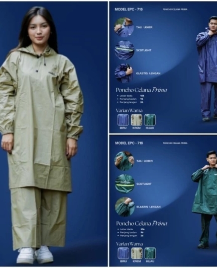 Jas Hujan Ponco Celana Elmondo Prima 716 - Mantel Stelan Poncho Lengan Dewasa Pria dan Wanita