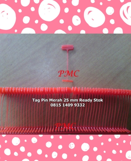 Ready Stok Tag Pin ukuran 25 mm warna MerahBandrol Harga, digunakan dengan alat bantu tembak Tag Gun , untuk keperluanBandrol harga atau merk Pakaian, baju, celana, sepatu, topi, tas, dll.Marker usaha garmenPenanda pakaian cuci di usaha Laundry,distro,toko baju,industri karpet dsb Features :Size 25mmColour Merah1 box isi 5000 pcs